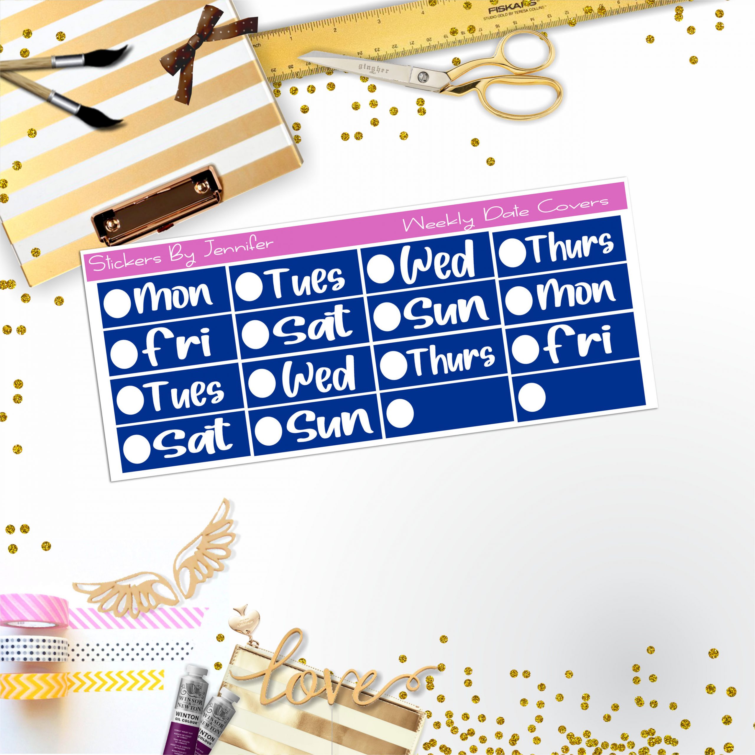 Weekly Date Covers R014 Planner Stickers, Journal Stickers, Functional Planner Stickers, Stationary Stickers