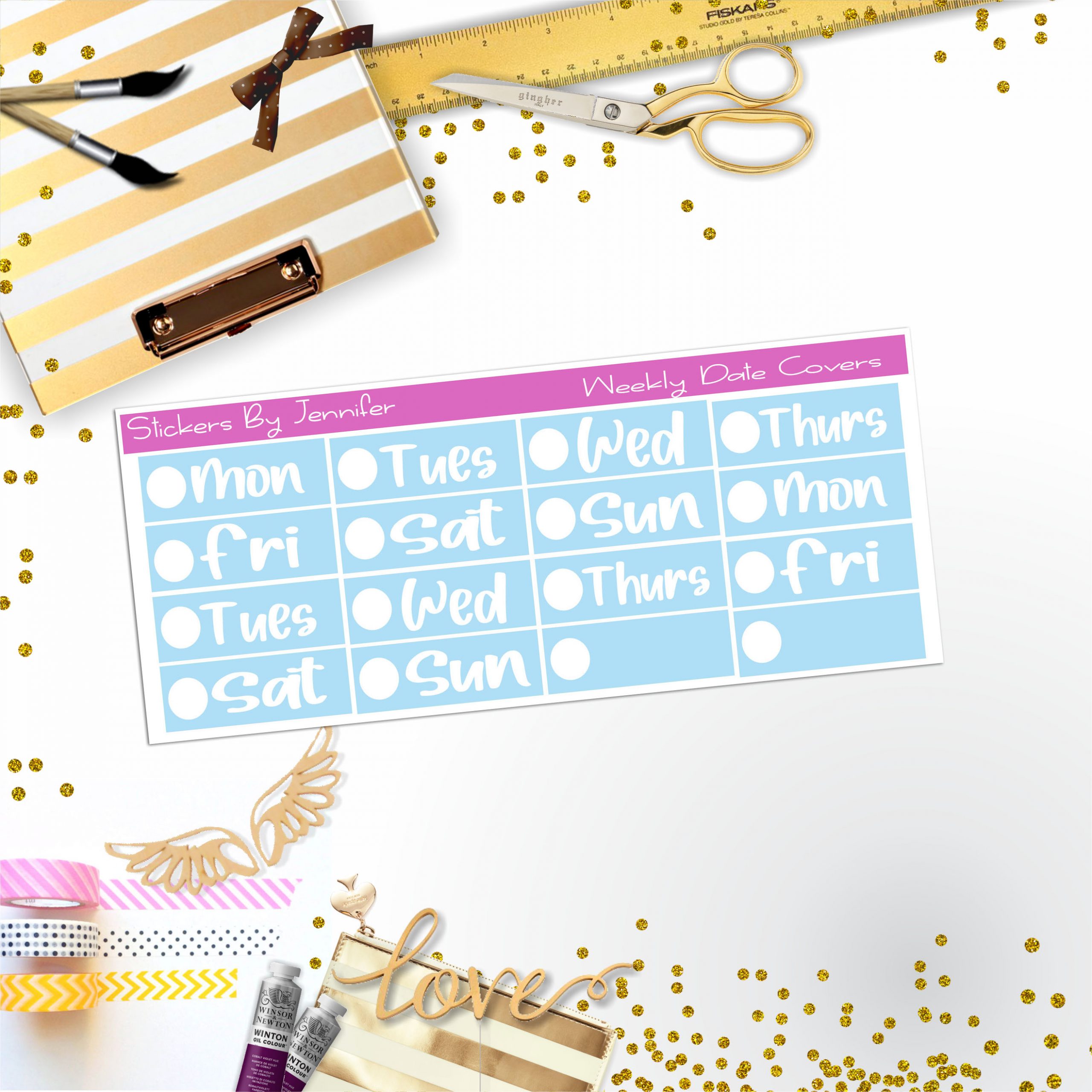 Weekly Date Covers R017 Planner Stickers, Journal Stickers, Functional Planner Stickers, Stationary Stickers