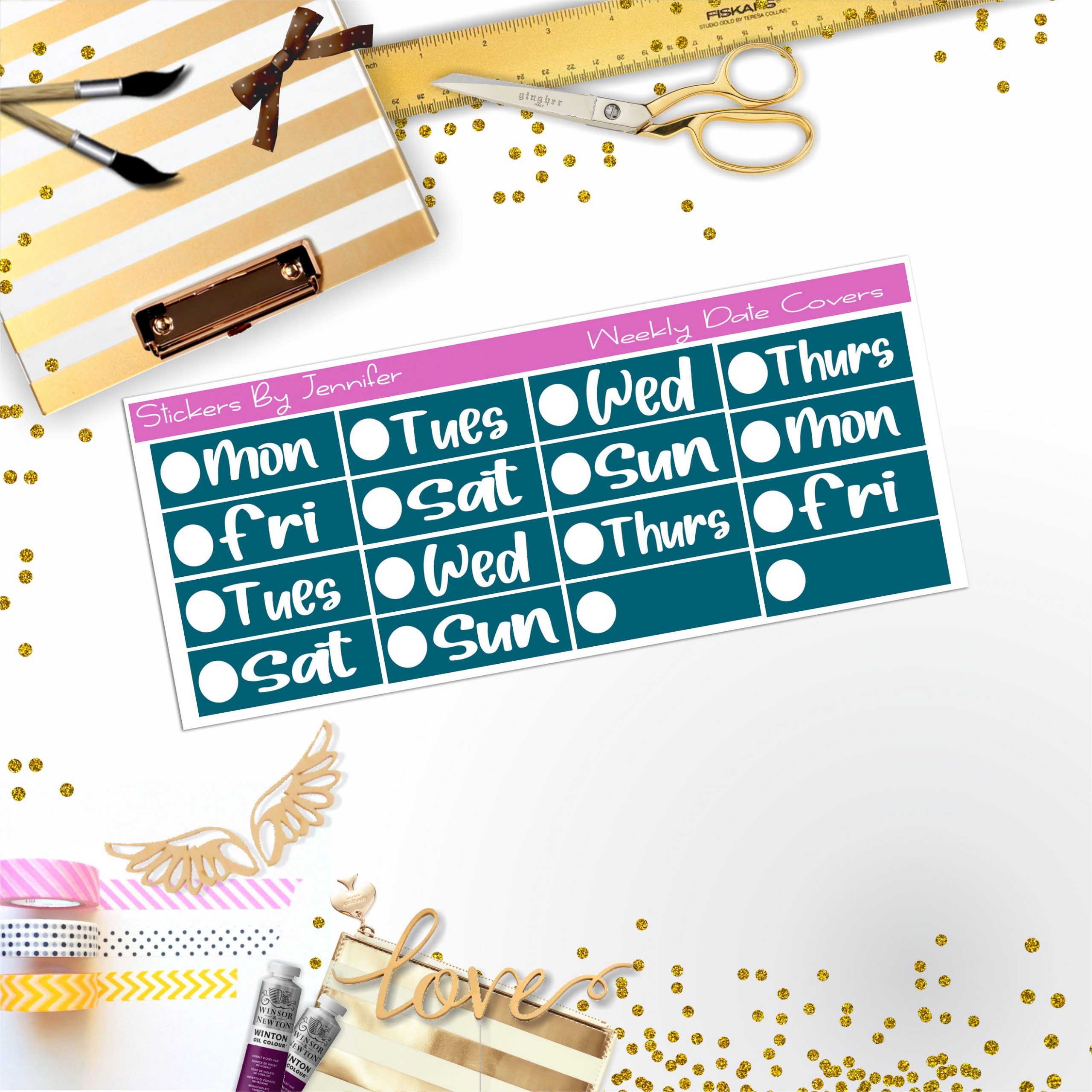 Weekly Date Covers R023 Planner Stickers, Journal Stickers, Functional Planner Stickers, Stationary Stickers