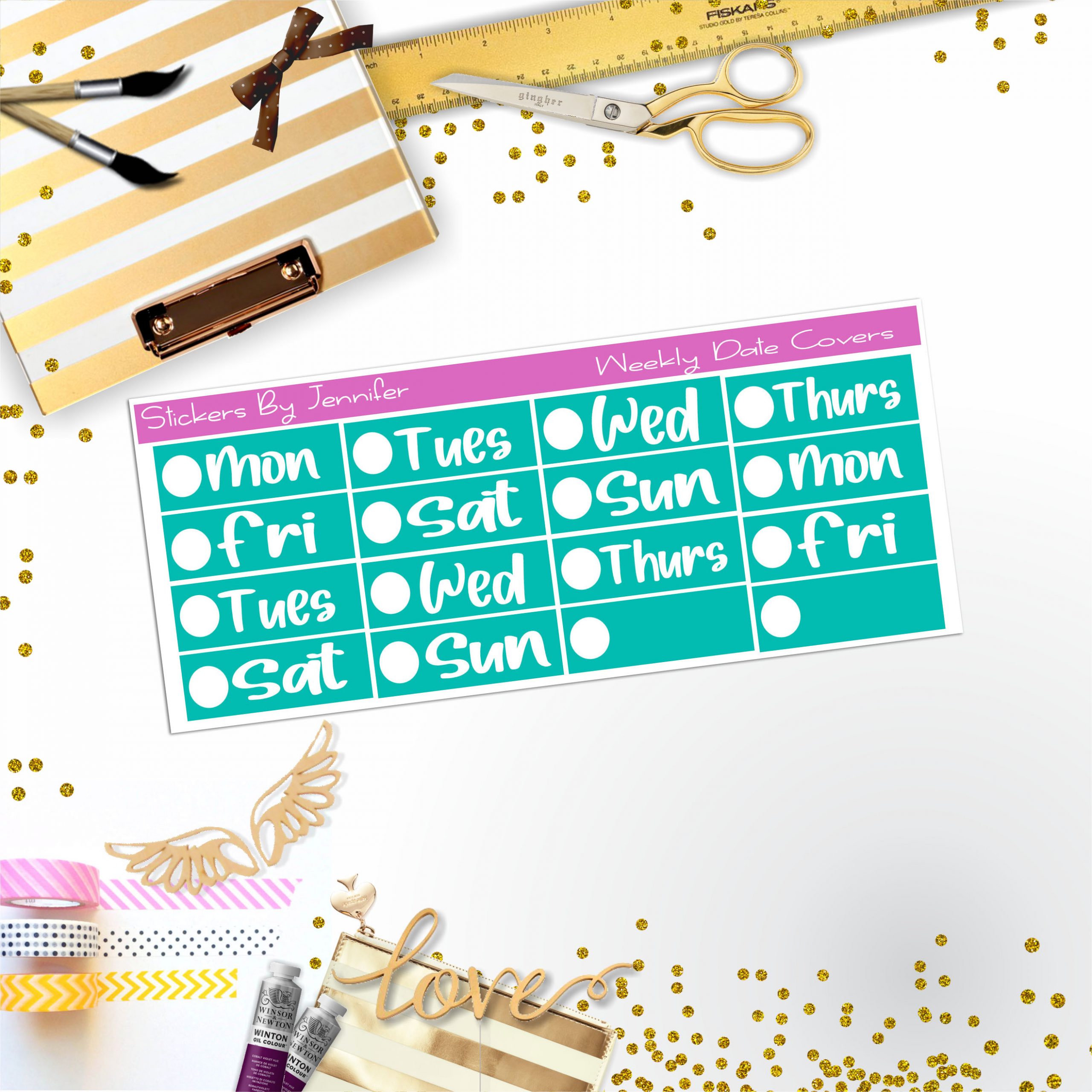 Weekly Date Covers R025 Planner Stickers, Journal Stickers, Functional Planner Stickers, Stationary Stickers