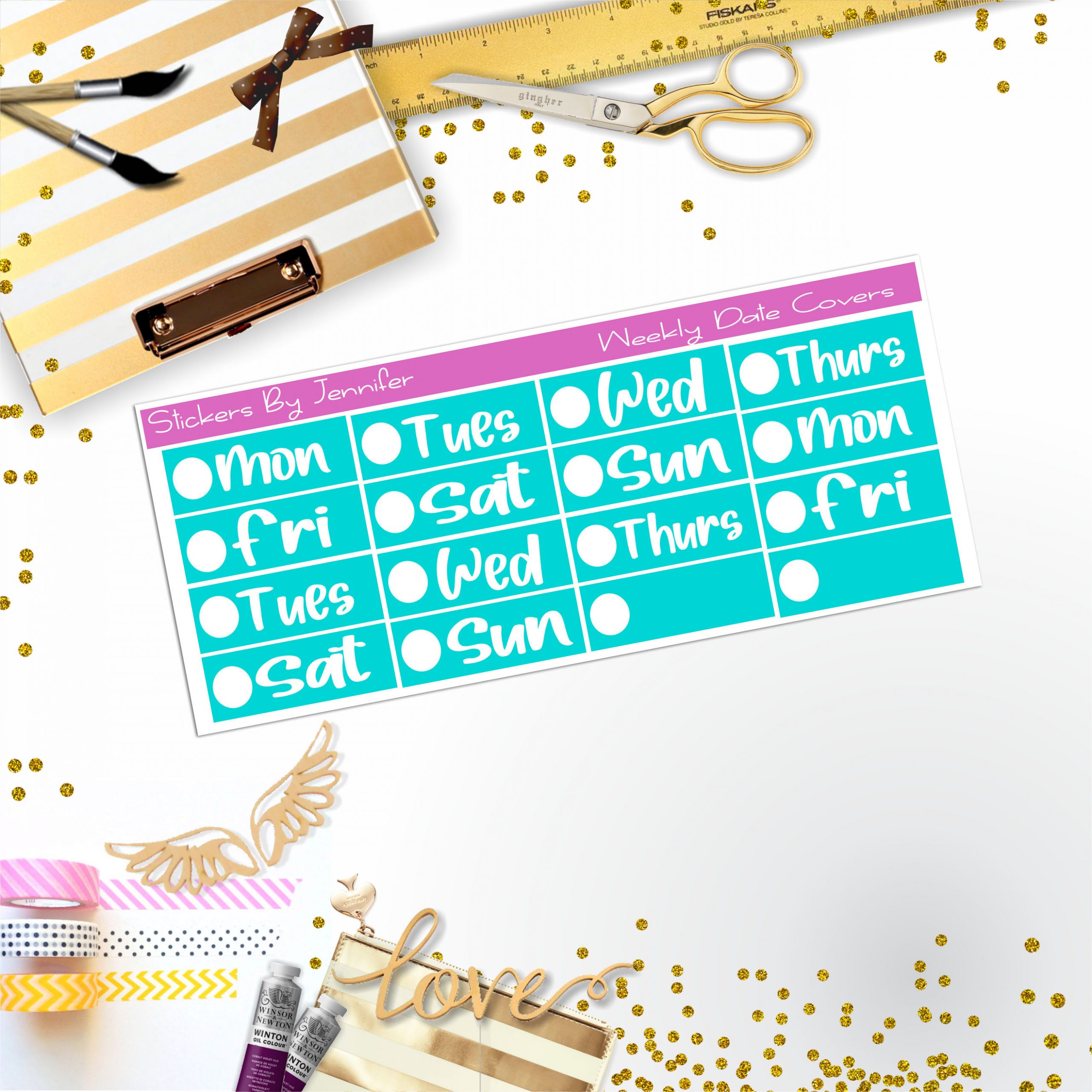 Weekly Date Covers R026 Planner Stickers, Journal Stickers, Functional Planner Stickers, Stationary Stickers
