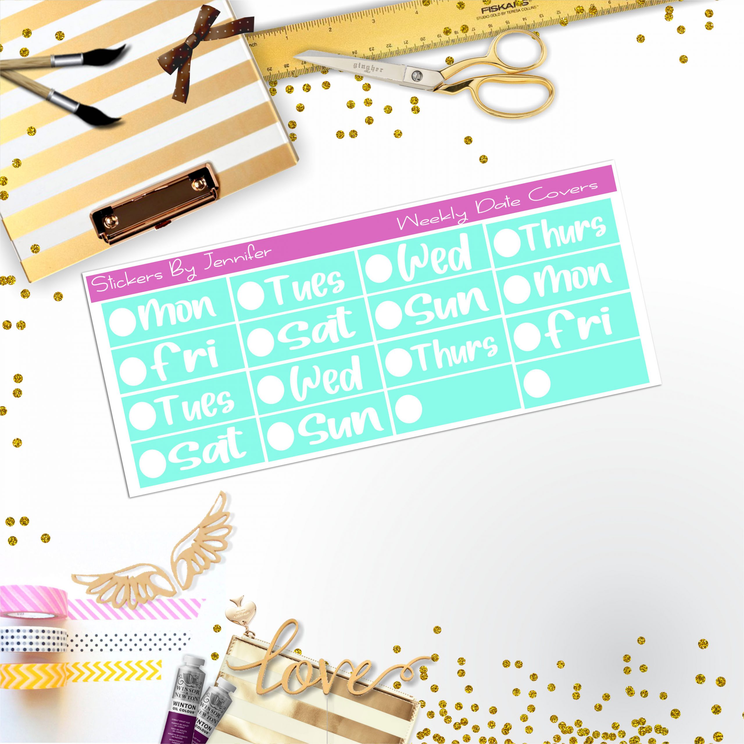 Weekly Date Covers R028 Planner Stickers, Journal Stickers, Functional Planner Stickers, Stationary Stickers