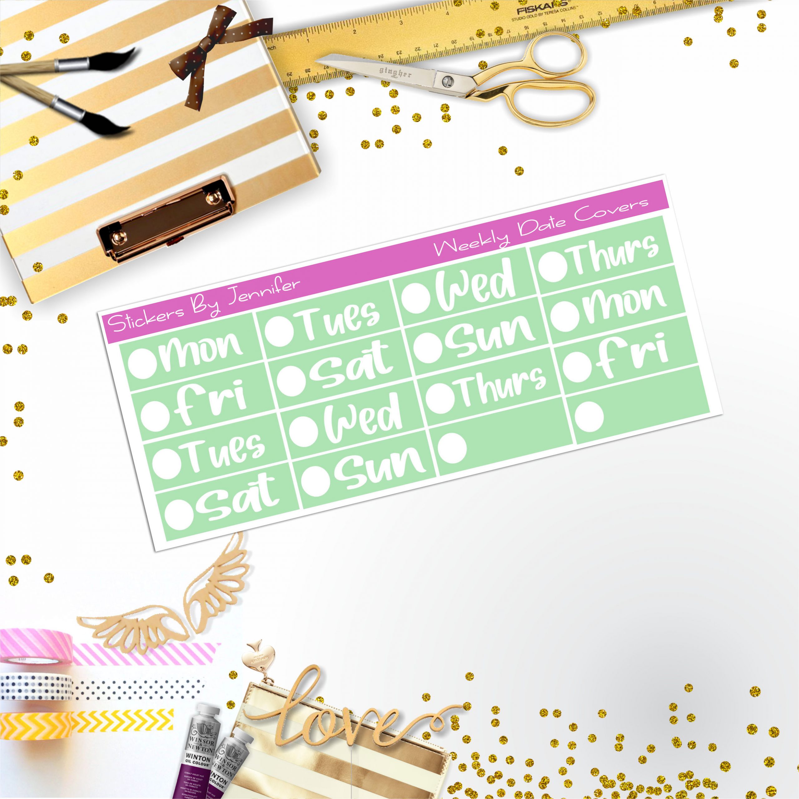Weekly Date Covers R032 Planner Stickers, Journal Stickers, Functional Planner Stickers, Stationary Stickers