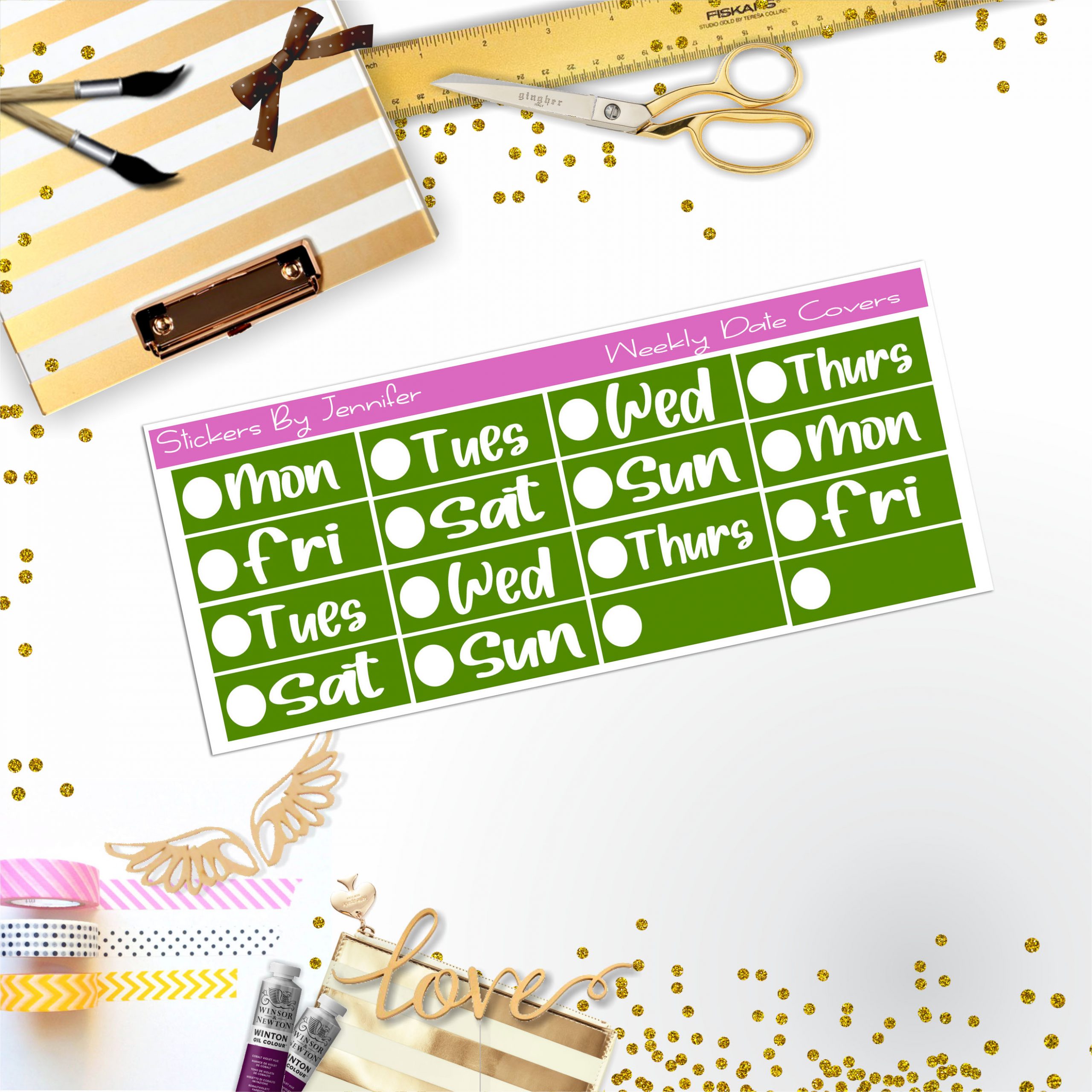 Weekly Date Covers R037 Planner Stickers, Journal Stickers, Functional Planner Stickers, Stationary Stickers