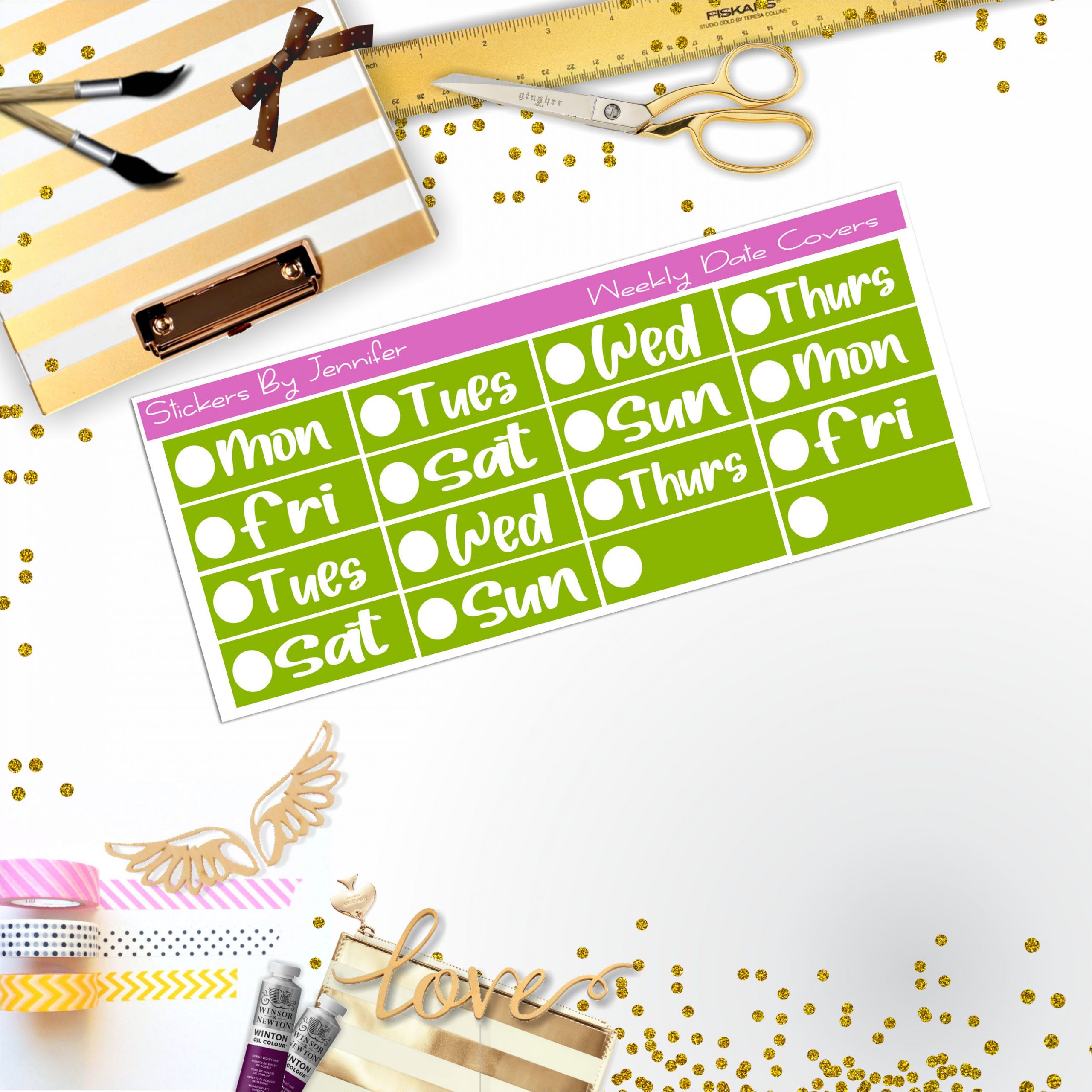 Weekly Date Covers R042 Planner Stickers, Journal Stickers, Functional Planner Stickers, Stationary Stickers