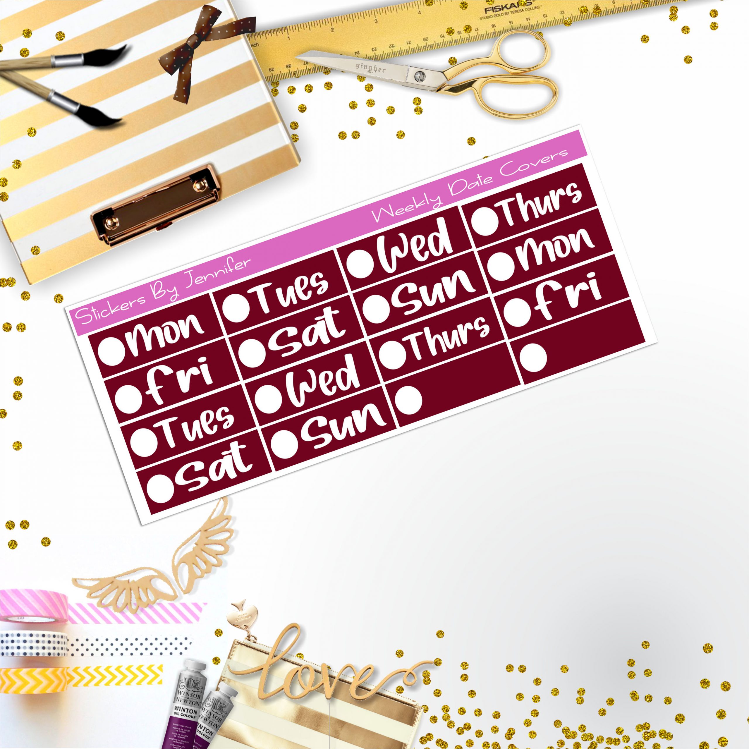 Weekly Date Covers R061 Planner Stickers, Journal Stickers, Functional Planner Stickers, Stationary Stickers