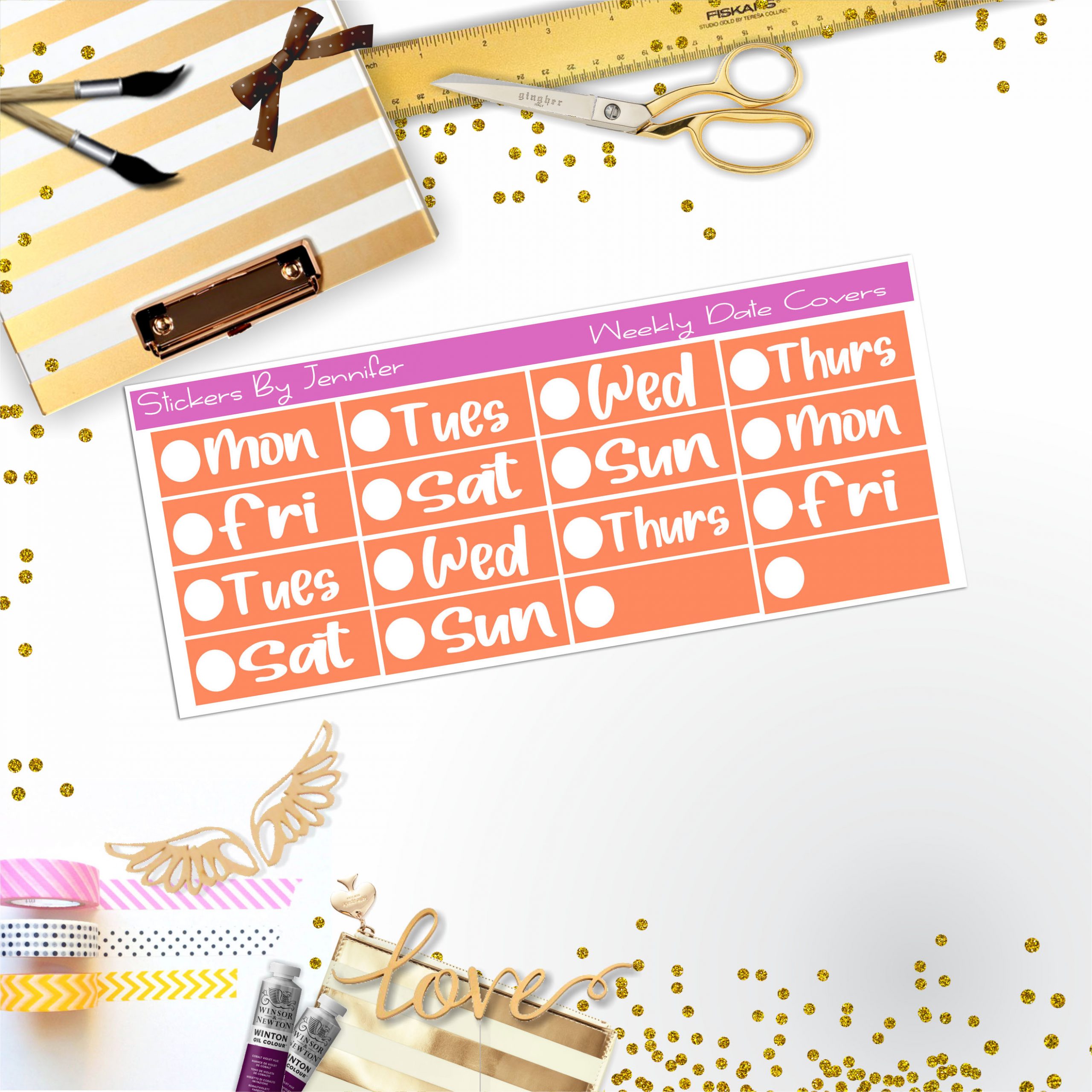 Weekly Date Covers R089 Planner Stickers, Journal Stickers, Functional Planner Stickers, Stationary Stickers